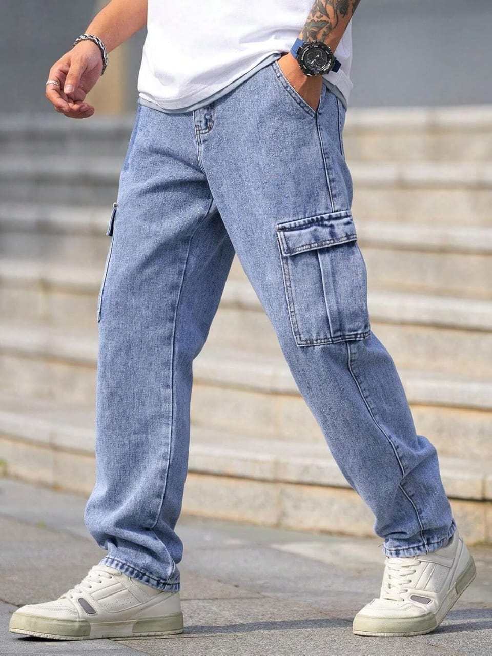 Step up your casual style with our Denim Cargo Pants in Light Blue Stone Wash. Designed for comfort, durability, and everyday functionality.